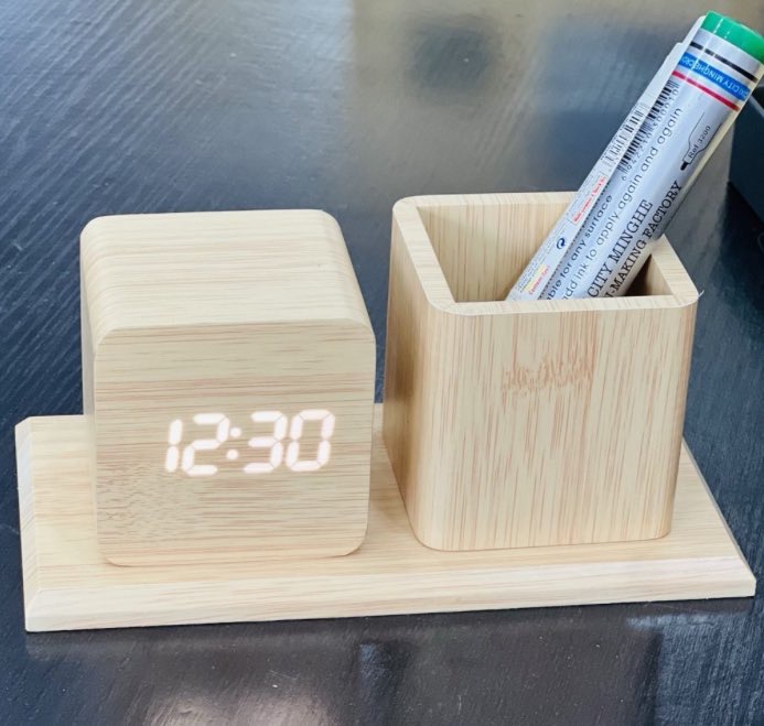 Buy Engraved Wooden Clock & Pen Holder Gift Set on Sweet Scents And Beyond